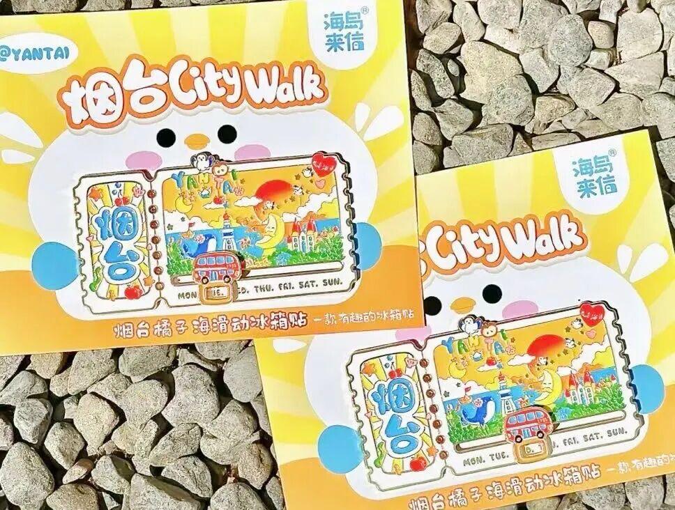 “八仙护佑”系列是海岛来信文创产品中的畅销品,创作灵感来源于八仙过海传说,旋转的八仙将神话传说与吉祥寓意用一种轻松有趣的方式呈现。而另一款畅销品“票根系列”冰箱贴,则是城市风貌的符号化集成:复古的票根造型,融合了烟台山灯塔、月亮湾、17路巴士等烟台元素,这种“一贴览全城”的创意,极大地满足了人们收集城市印象的需求,成为游客带走“完整烟台”的绝佳载体。
