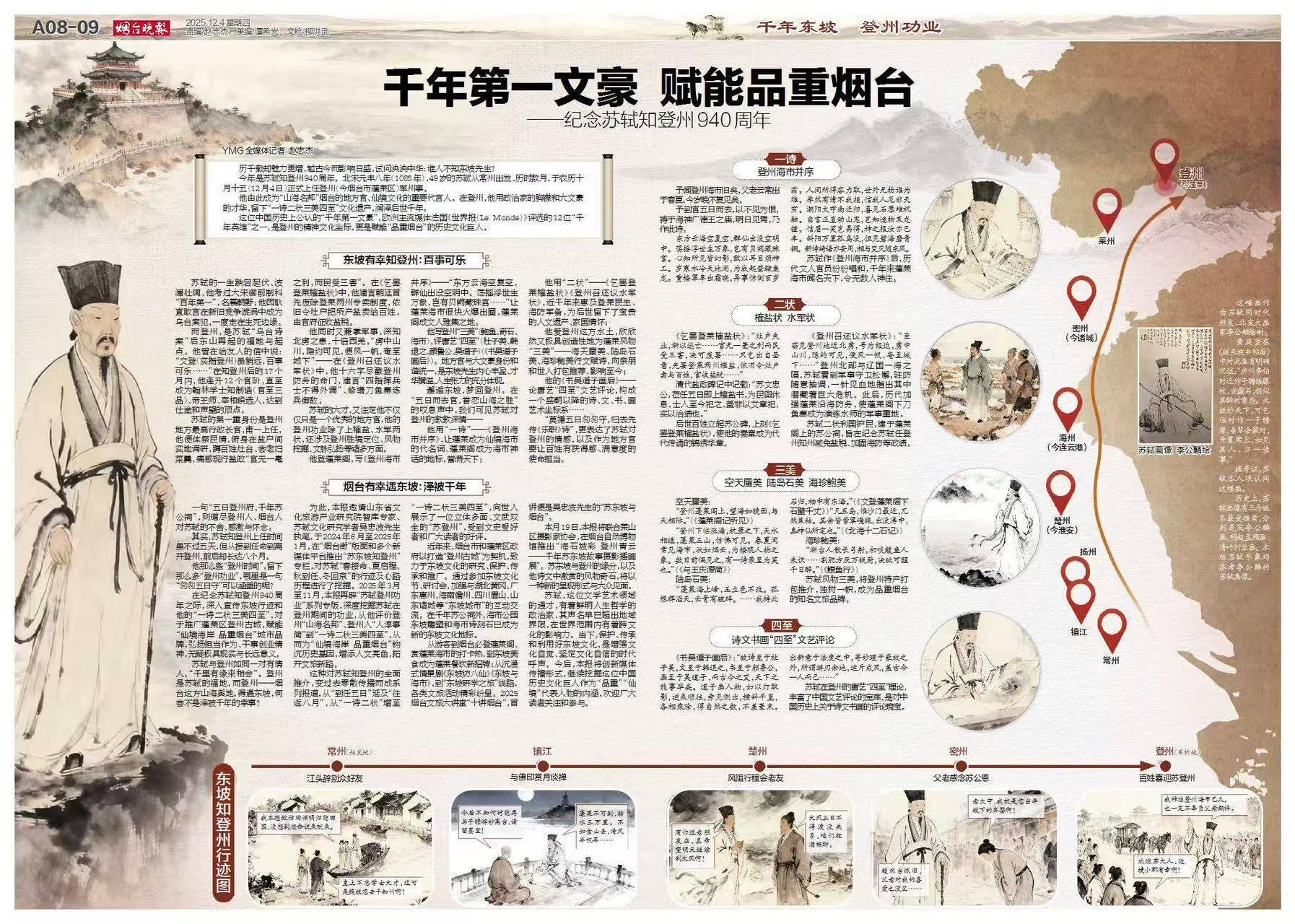 据《烟台晚报》重磅连版报道,今年是苏轼知登州940周年。北宋元丰八年(1085年),49岁的苏轼从常州出发、历时数月,于农历十月十五(12月4日)正式上任登州(今烟台市蓬莱区)军州事。