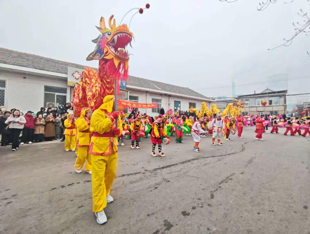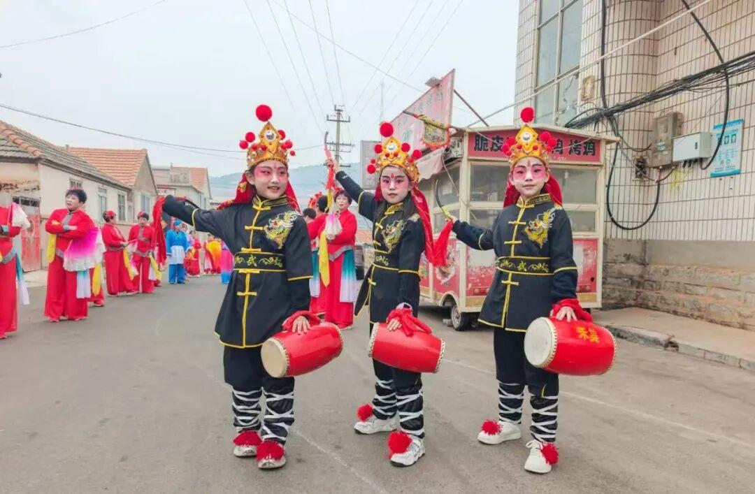早上9点,在山后初家村村委,随着一声长喝,由海阳大秧歌、舞龙、锣鼓等近百人组成的巡游队伍正式开始巡游。